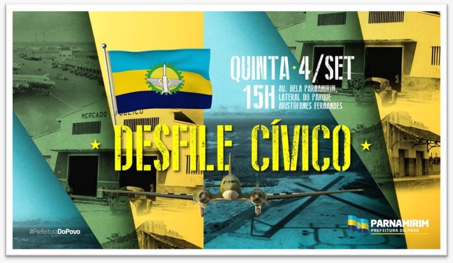 A Prefeitura de Parnamirim, por meio da Secretaria Municipal de Educação (SME) vai realizar nesta quinta-feira (4), a partir das 15h, o tradicional Desfile Cívico na Avenida Bela Parnamirim, lateral do Parque de Exposições Aristófanes Fernandes, em alusão ao 7 de Setembro que é comemorado o Dia da Independência do Brasil.