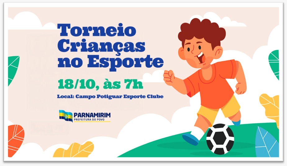 A Prefeitura de Parnamirim, através da Secretaria Municipal de Esporte e Lazer, realiza neste sábado, 18, o Torneio Infantil “Crianças no Esporte” em comemoração ao Dia das Crianças, buscando fomentar a prática esportiva em crianças de até 11 anos, além de proporcionar um dia de diversão para as crianças e seus familiares.